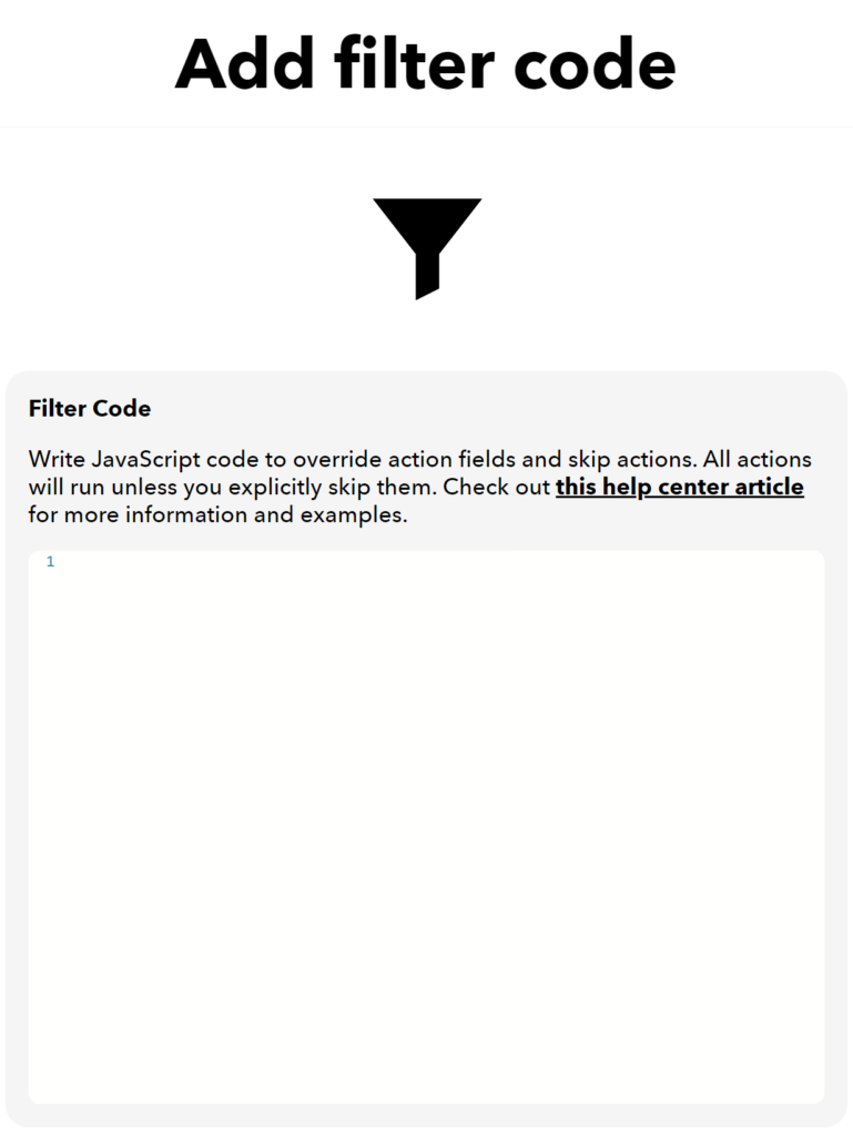 • Requêtes et logique conditionnelle : il s’agit pour moi du point le plus intéressant. Il est maintenant possible de programmer des filtres. Pour cela, IFTTT proposera une zone de texte vous permettant d’écrire du code JavaScript. Ce code vous permettra par exemple d’exécuter des applets uniquement à certaines heures, d’ignorer des actions, d’exécuter des actions selon certaines données de déclenchement…